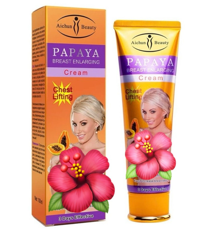 کرم حجم دهنده سریع سینه عصاره پاپایا آیچون بیوتی AICHUN BEAUTY با فرمولاسیون خاص باعث حجم دهی به سینه ها شده و آن ها را سفت و محکم می کند. این کرم سینه های شما را تقویت، محکم و بلند کرده و باعث افرایش جذابیت آن ها می شود. این محصول به صورت موضوعی بوده و از گیاهان طبیعی برای بزرگ کردن، سفت کردن، تغذیه و کاهش چین و چروک سینه ساخته شده است. همچنین با رفع چین و چروک باعث جوانی پوست شده و آن را نرم، لطیف و صاف می کند. این کرم دارای تاثیرگذاری سریع بوده و در کمترین زمان ممکن شما را به سایز دلخواه می رساند. این محصول برای سفت شدن سینه و ایجاد فرمی جذاب بسیار موثر خواهد بود. همچنین به سفید و روشن شدن پوست کمک می کند.